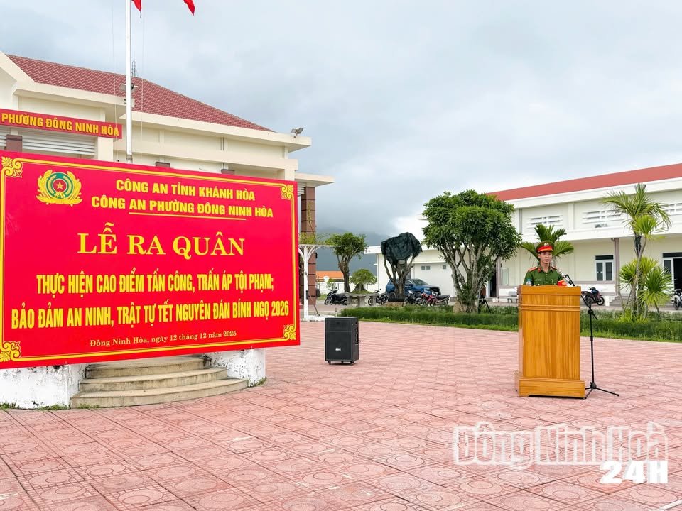 Sáng ngày 12/12/2025, tại trụ sở UBND phường Đông Ninh Hòa, Công an phường tổ chức Lễ ra quân thực hiện cao điểm tấn công, trấn áp tội phạm; bảo đảm an ninh, trật tự Tết Nguyên đán Bính Ngọ 2026.