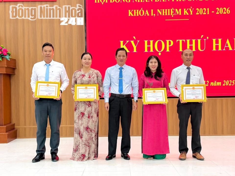 Nhân dịp này, HĐND phường Đông Ninh Hoà đã khen thưởng 04 tập thể và 08 cá nhân có thành tích xuất sắc trong hoạt động của HĐND phường nhiệm kỳ 2021–2026.