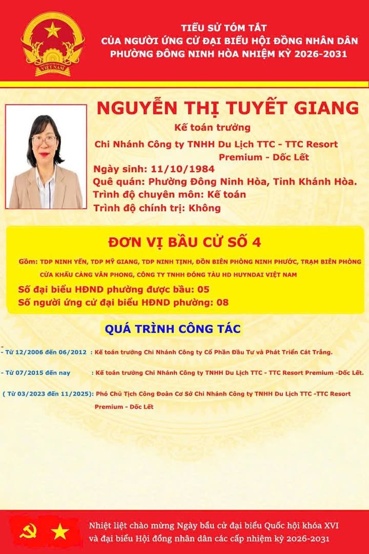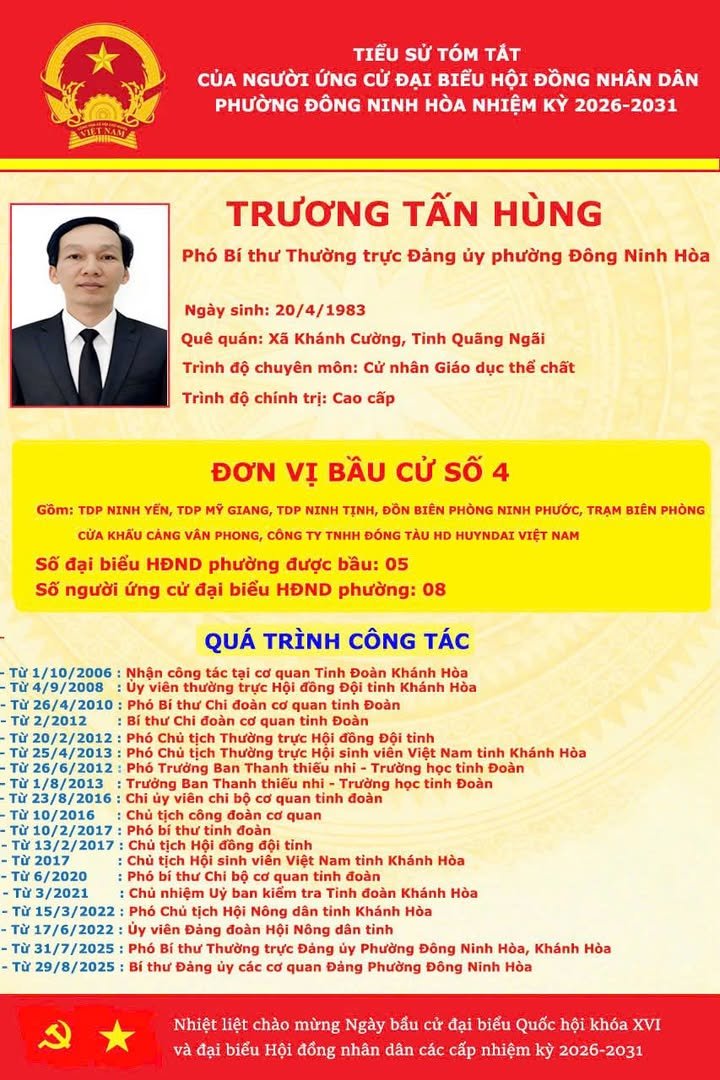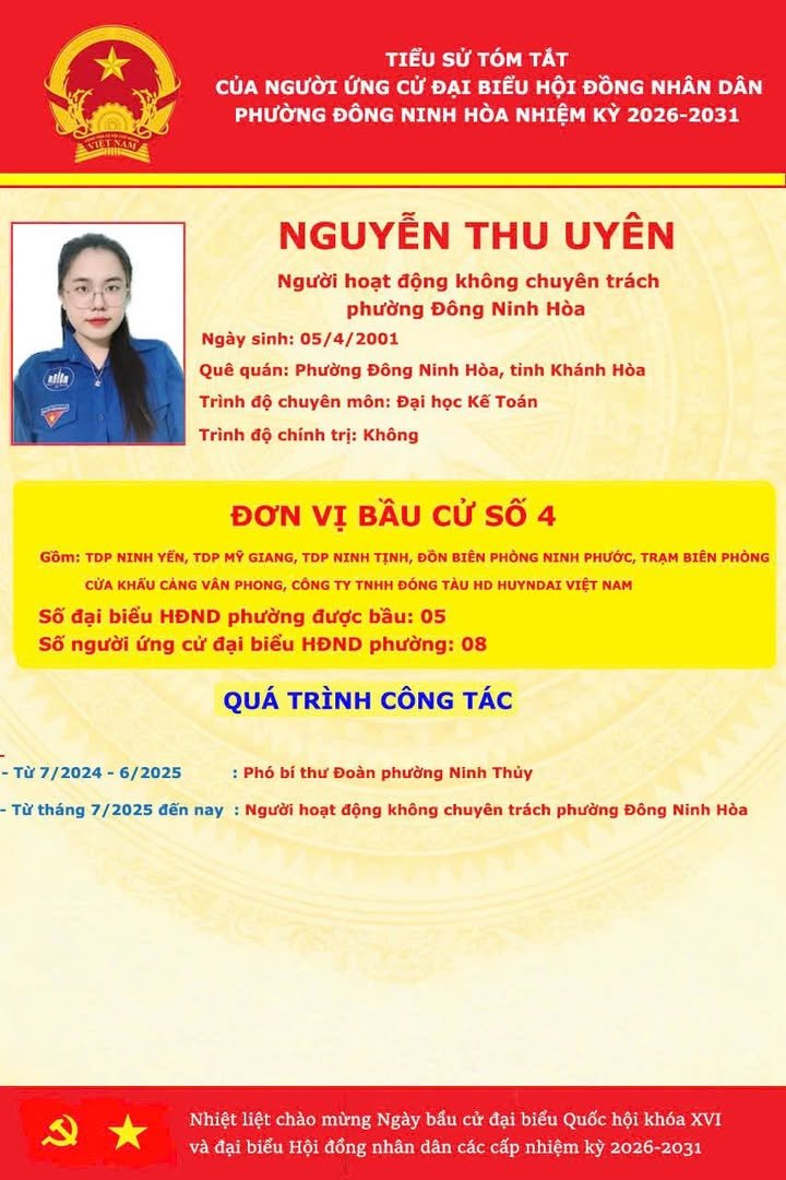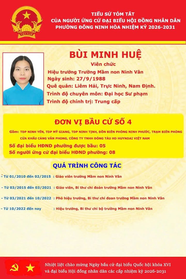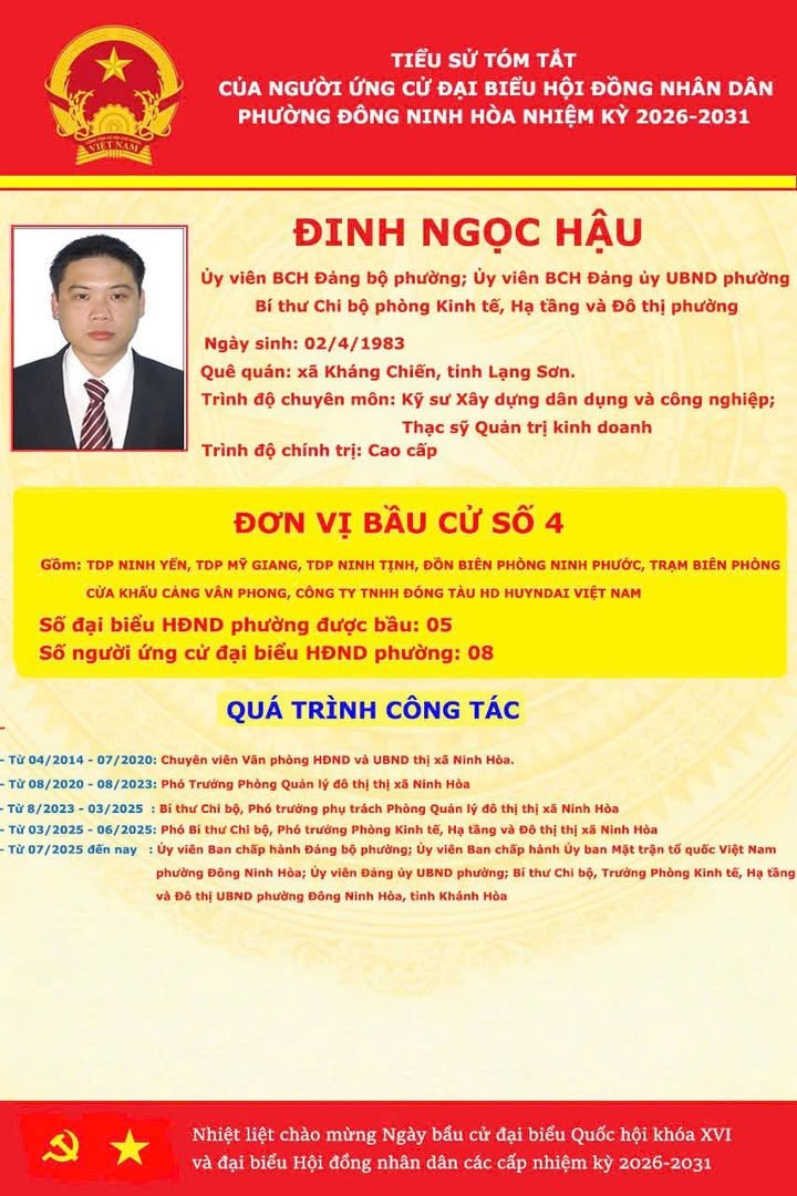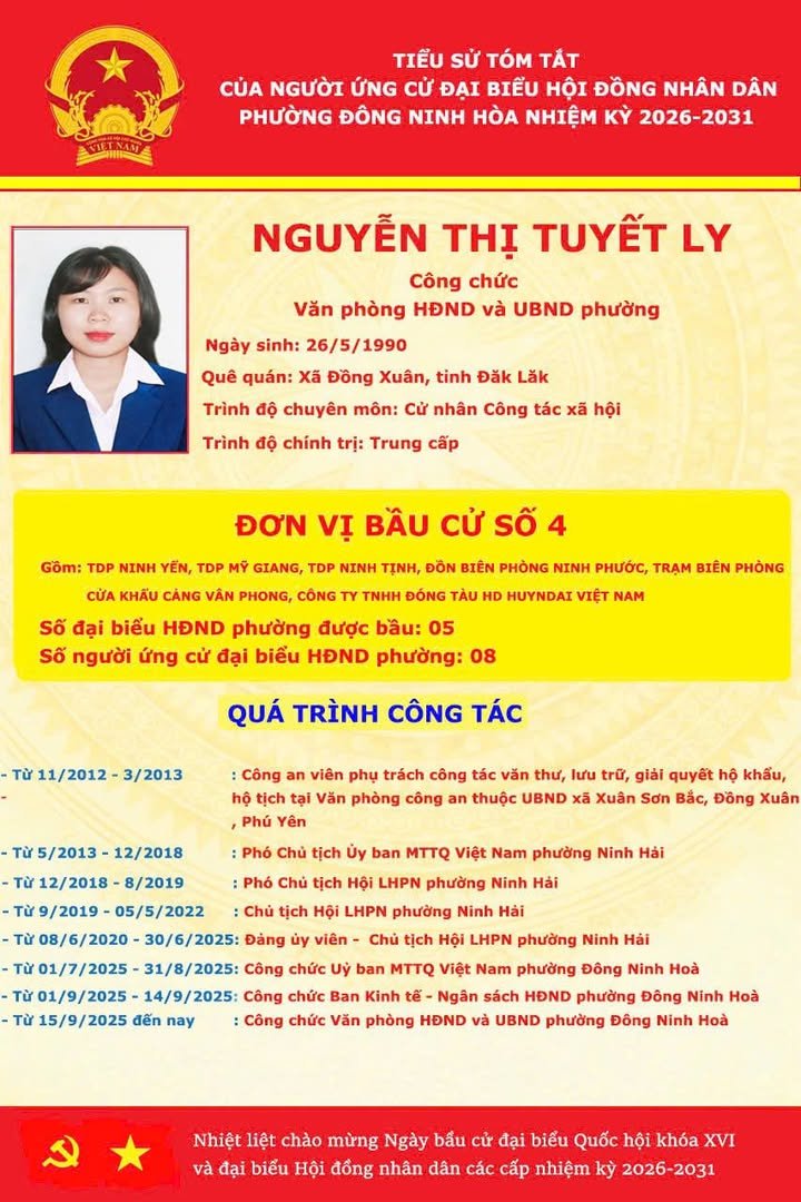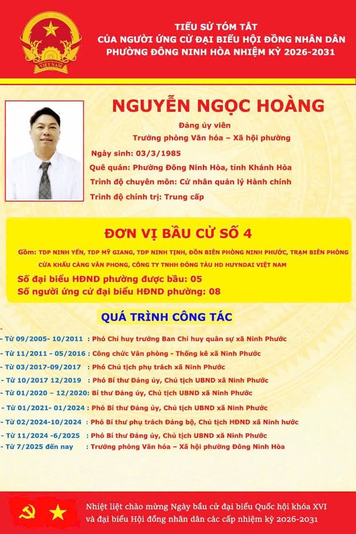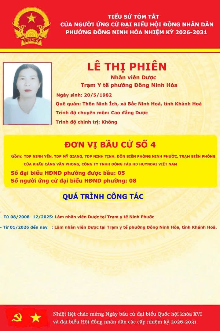 🎉TIỂU SỬ TÓM TẮT CỦA NGƯỜI ỨNG CỬ ĐẠI BIỂU HỘI ĐỒNG NHÂN DÂN PHƯỜNG ĐÔNG NINH HOÀ KHÓA II, NHIỆM KỲ 2026 – 2031.